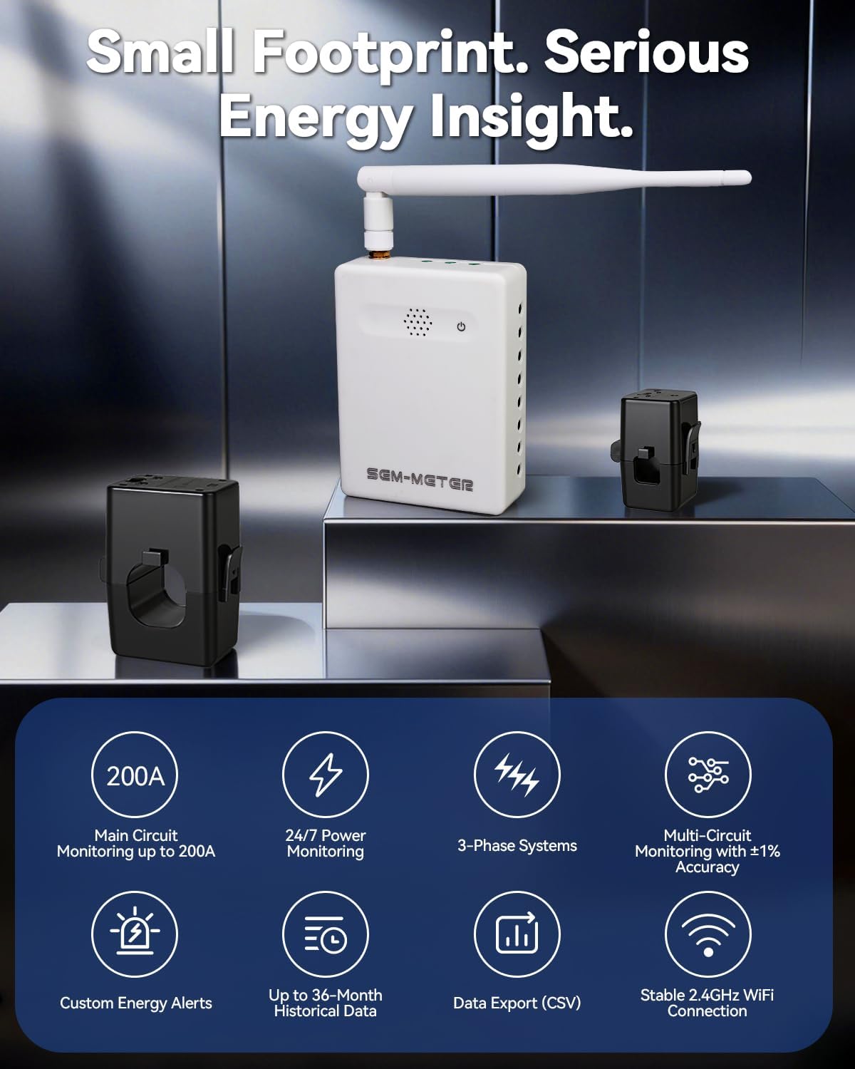 - ⚡ EASY INSTALLATION: Installs in circuit panel of most homes with clamp-on sensors. Supports single-phase up to 240VAC line-neutral; single, split-phase 120/240VAC; and three-phase up to 415Y/240VAC (no Delta). The branch lines can automatically match different phases and have no restrictions in terms of quantity and voltage.Panels with access only to busbars will need flexible sensors available from SEM-Meter.