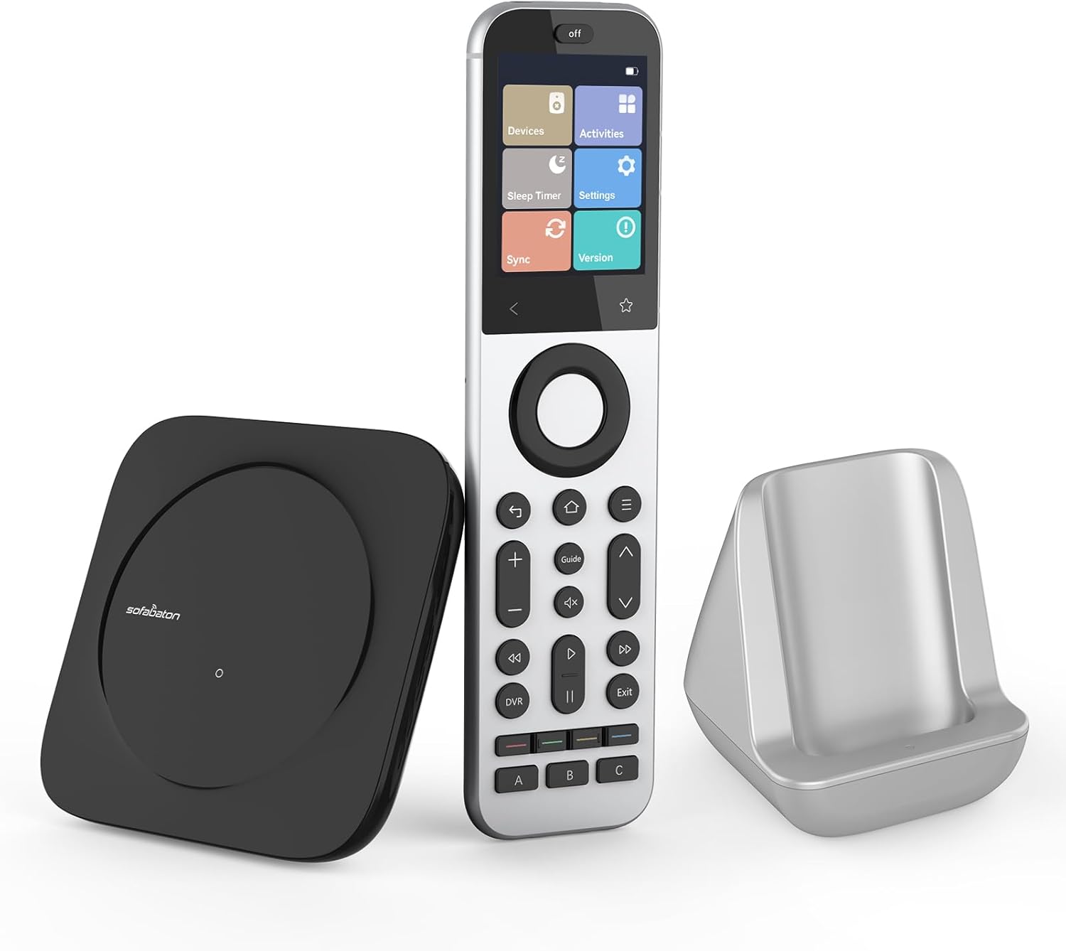 - 【Exclusive Touchscreen Innovation】The SofaBaton X2 revolutionizes universal remote control with its groundbreaking 2.4-inch HD touchscreen, putting advanced control literally at your fingertips. The smart interface enables direct touch navigation while dedicated shortcut buttons beneath the display provide immediate access to Number Pads & Macros. Paired with the innovative Type-C charging dock that ensures your remote is always charged and ready, create a seamless, modern control that redefines what a universal remote can achieve