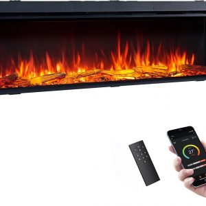 Legend Flame 59″ W Smart Build in Electric Fireplace Insert, 1-2-3 Sided View, Heater 750W/1500W, Multi Colors of Flame & Fuel Bed, Alexa/Google Assistant Enabled